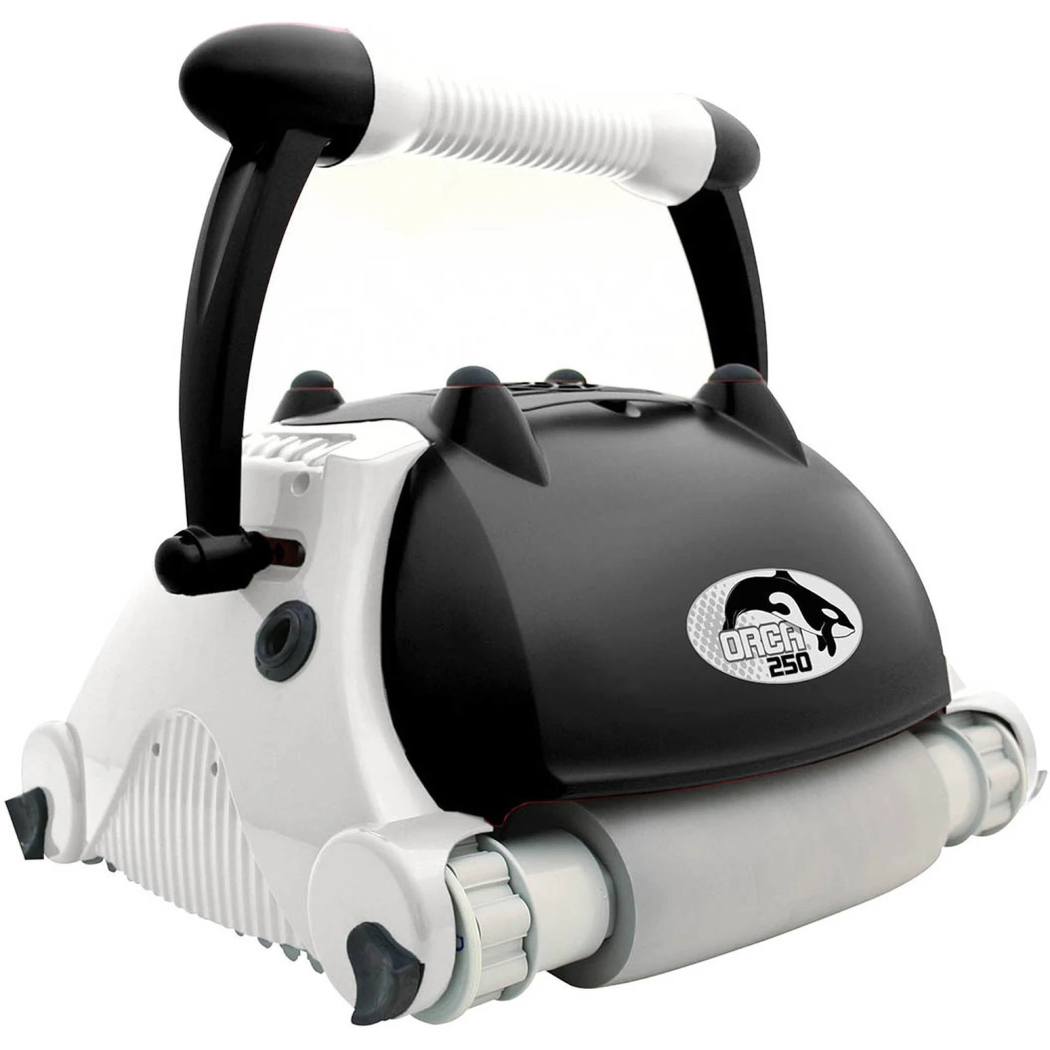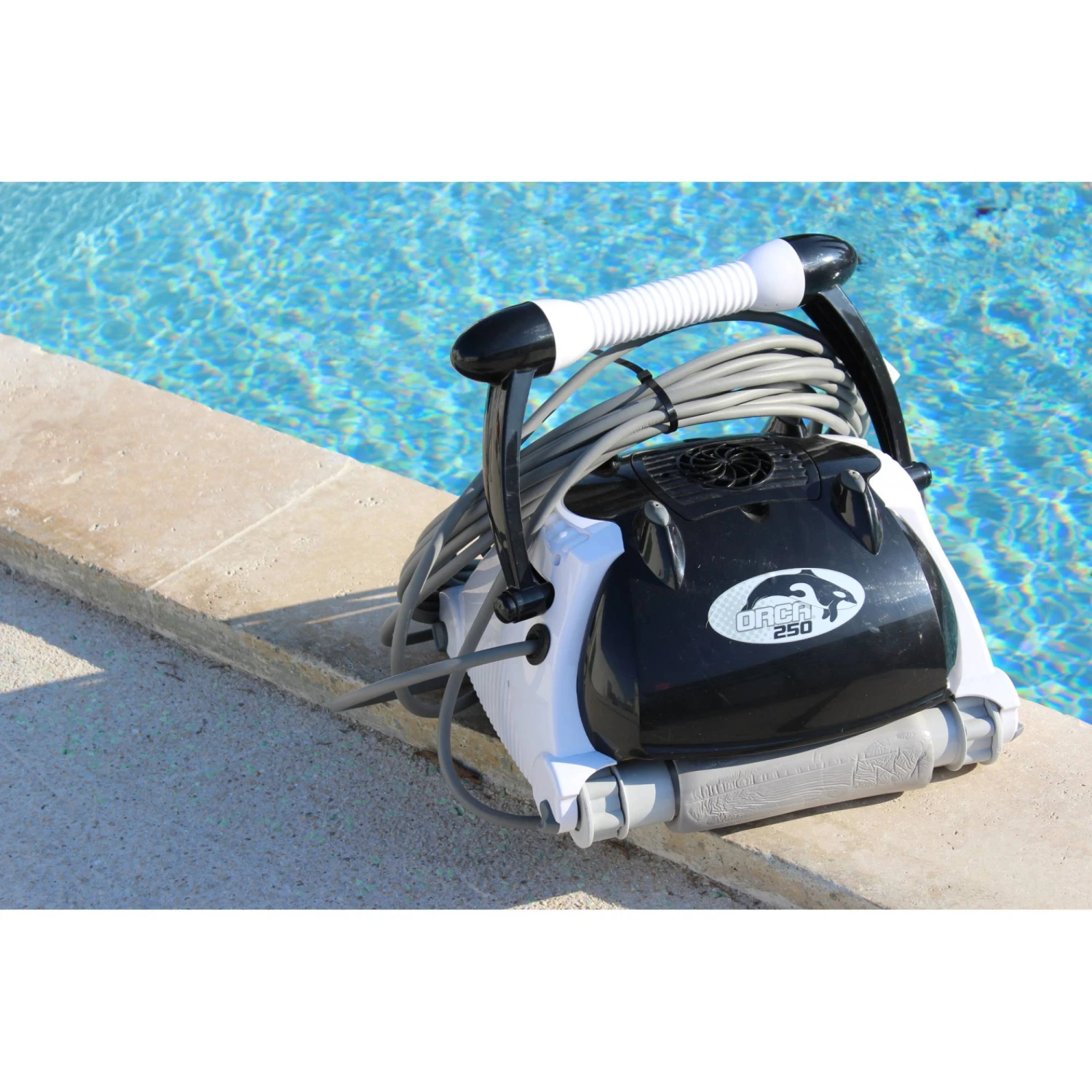 Der ORCA 250 bietet einen Reinigungszyklus von 2 Stunden. Er wird mit einem robusten Stromkabel betrieben und sorgt mit einer Kabellänge von 18 Metern für ausreichend Bewegungsfreiheit. Dank des Easy Take Schwimmgriffs ist er extrem einfach in der Handhabung.
