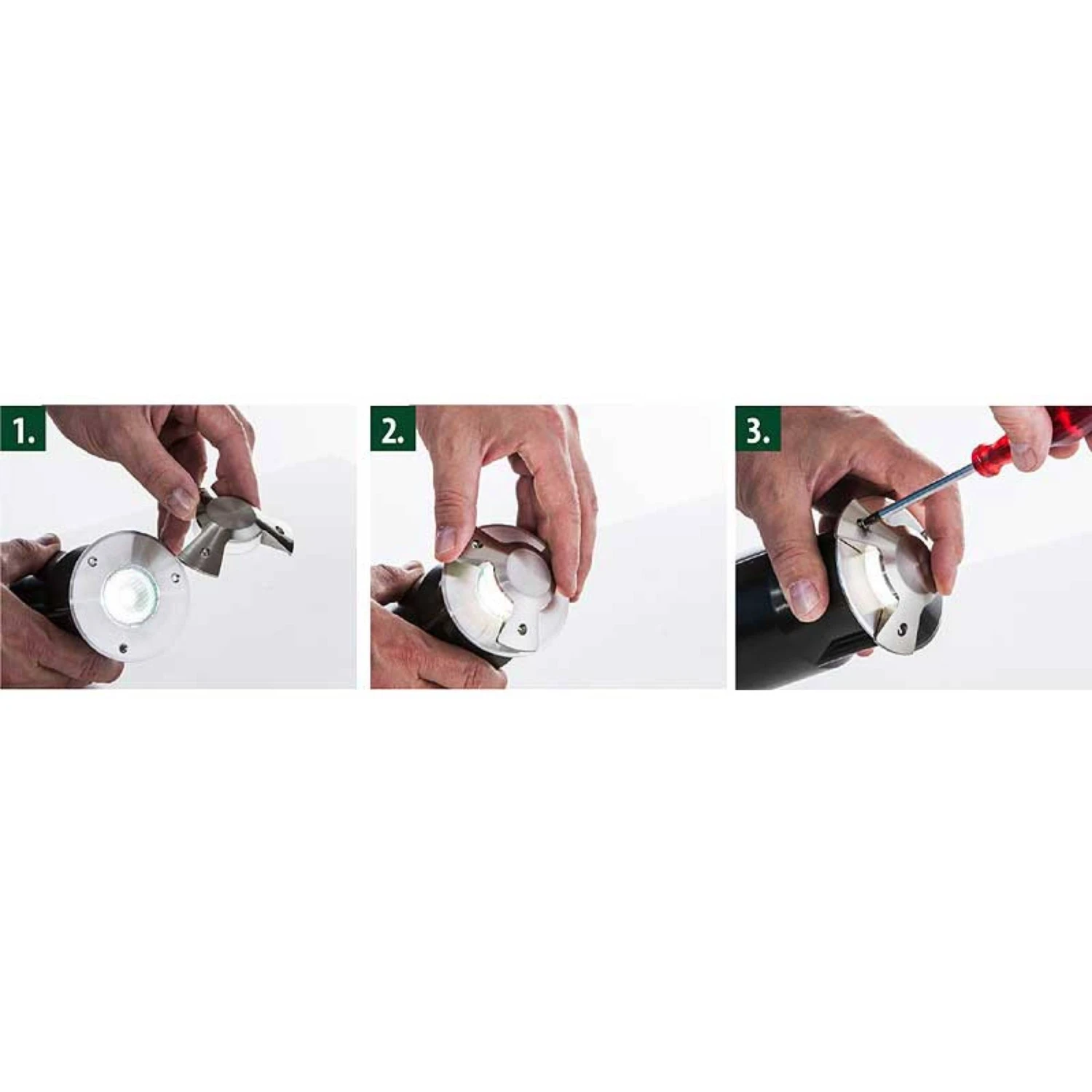 Mit der Blendabdeckung (3 Fenster) haben Sie die Möglichkeit das Licht des Bodeneinbaustrahlers teilweise abzudecken und auf 3 bestimmte Lichtkegel zu konzentrieren.