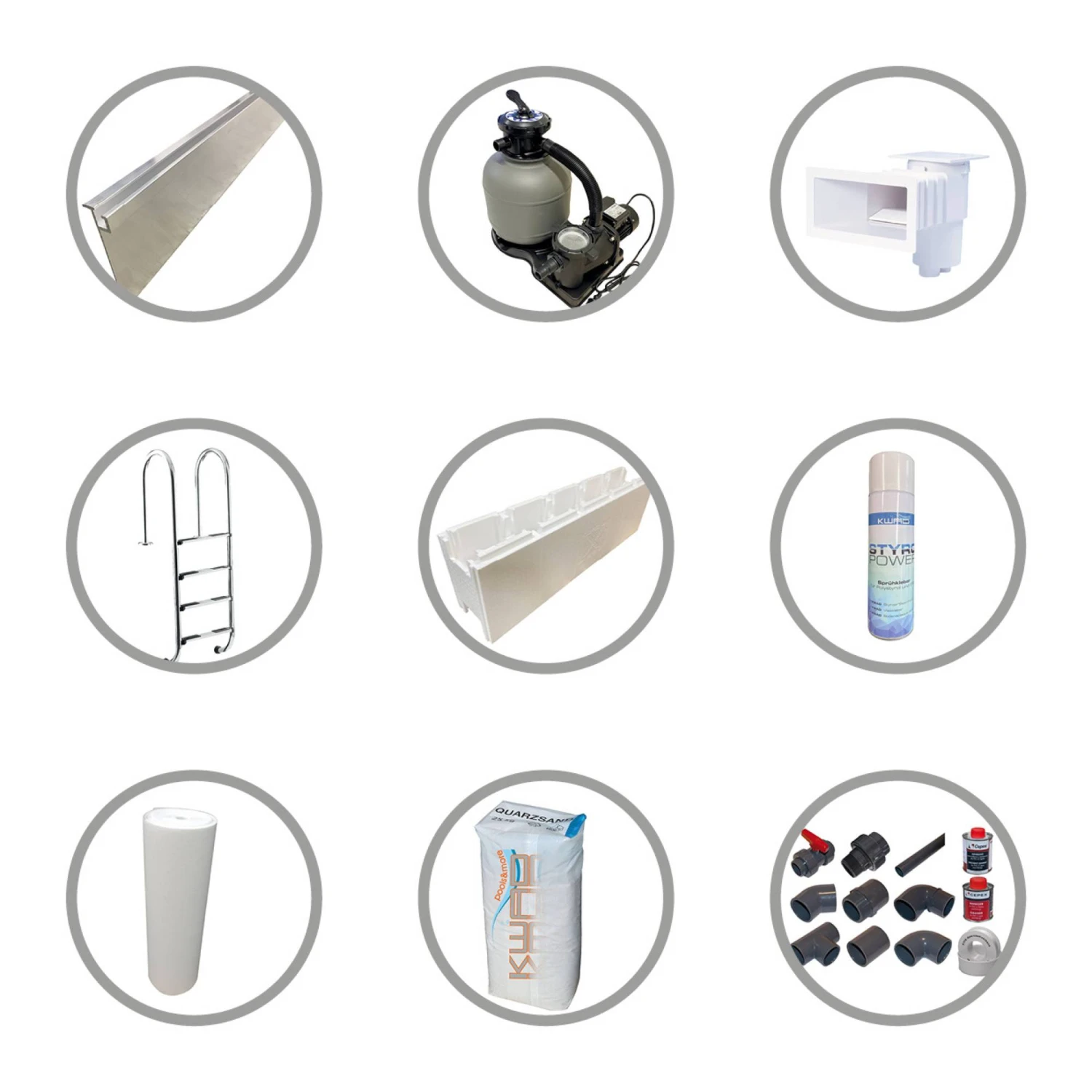 - Passende Sandfilteranlage mit entsprechender Leistung zur gewählten Poolgröße inkl. Filtersand