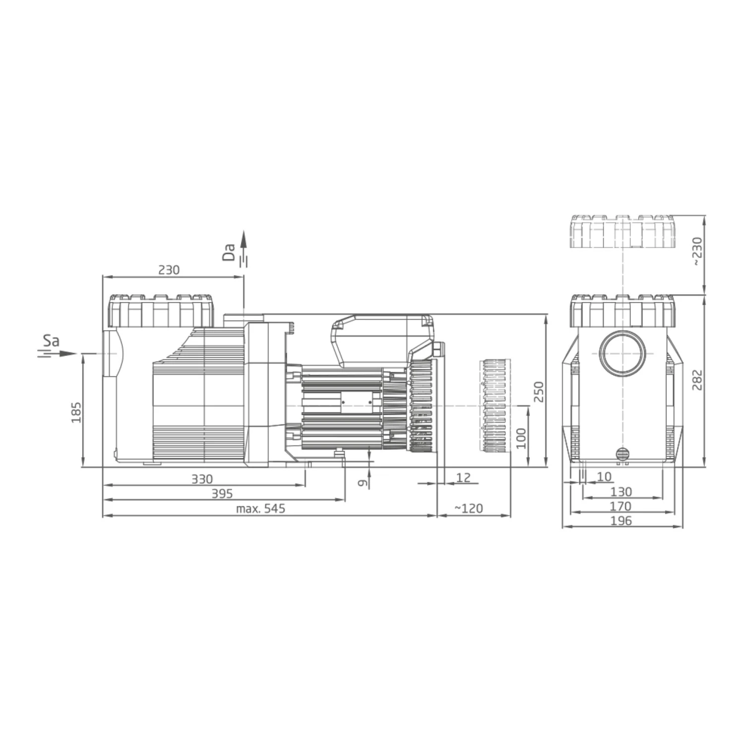 Schwimmbadwasser-Umwälzung in Filteranlagen, aufstellbar jeweils max. 3 m oberhalb oder unterhalb des Wasserniveaus.