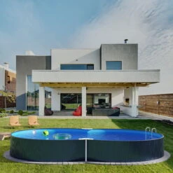 Stahlwandpool Achtform 540x350x120 Cm, Stahl 0,4 Mm Anthrazit, Folie 0,4 Mm Blau, Einhängebiese
