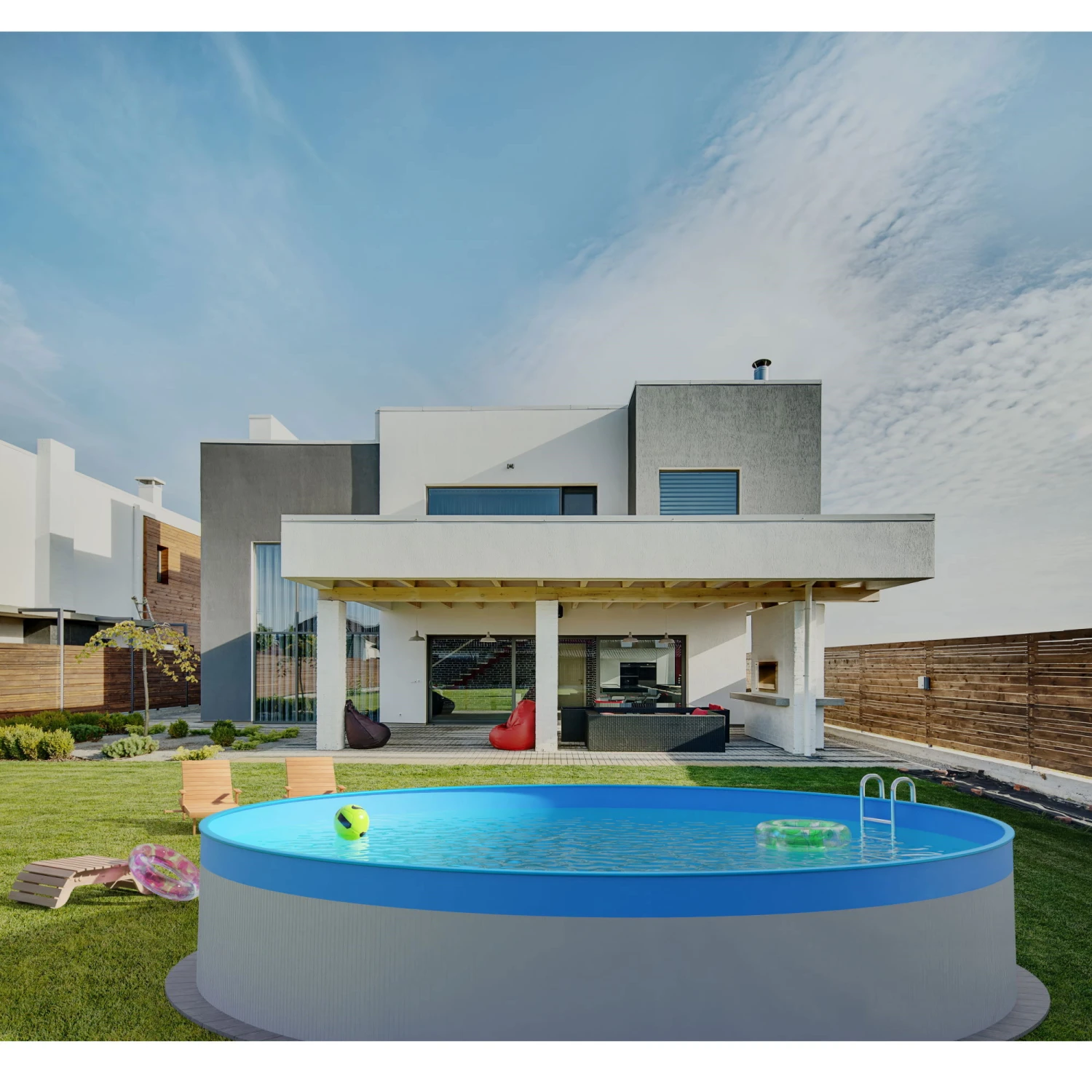 Ein runder Stahlwandpool ist der Klassiker unter den Pool-Systemen: preisgünstig & langlebig. Ideal für Heimwerker & DIY Projekte. Er besteht aus einem Mantel aus feuerverzinktem, schutzlackiertem, Stahlblech und einer abdichtenden Folienauskleidung.
