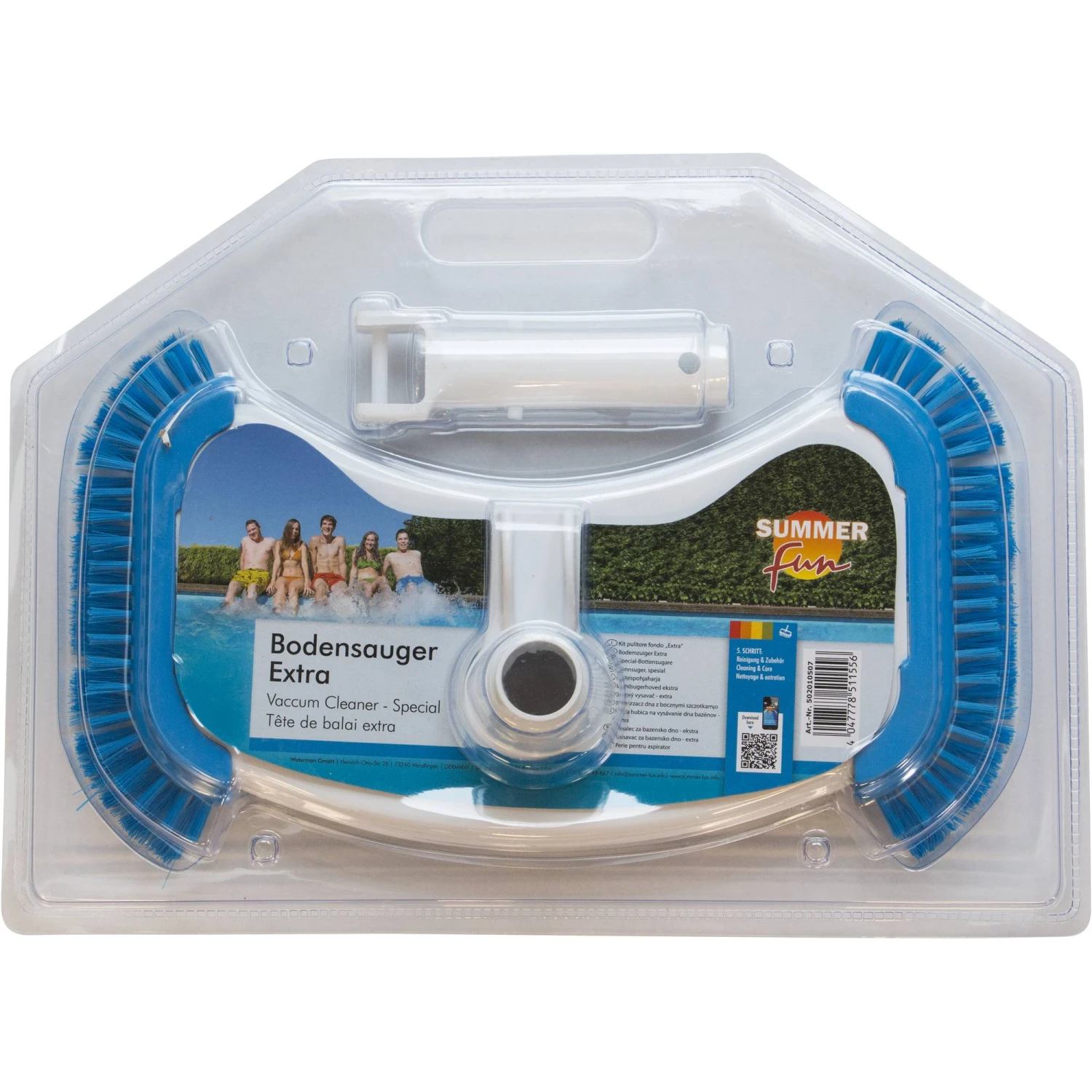 Die Bodenreinigerbürste Extra mit Gewichten von der Marke Summer Fun. Passend mit allen handelsüblichen Teleskopstangen mit 32 mm Durchmesser.
