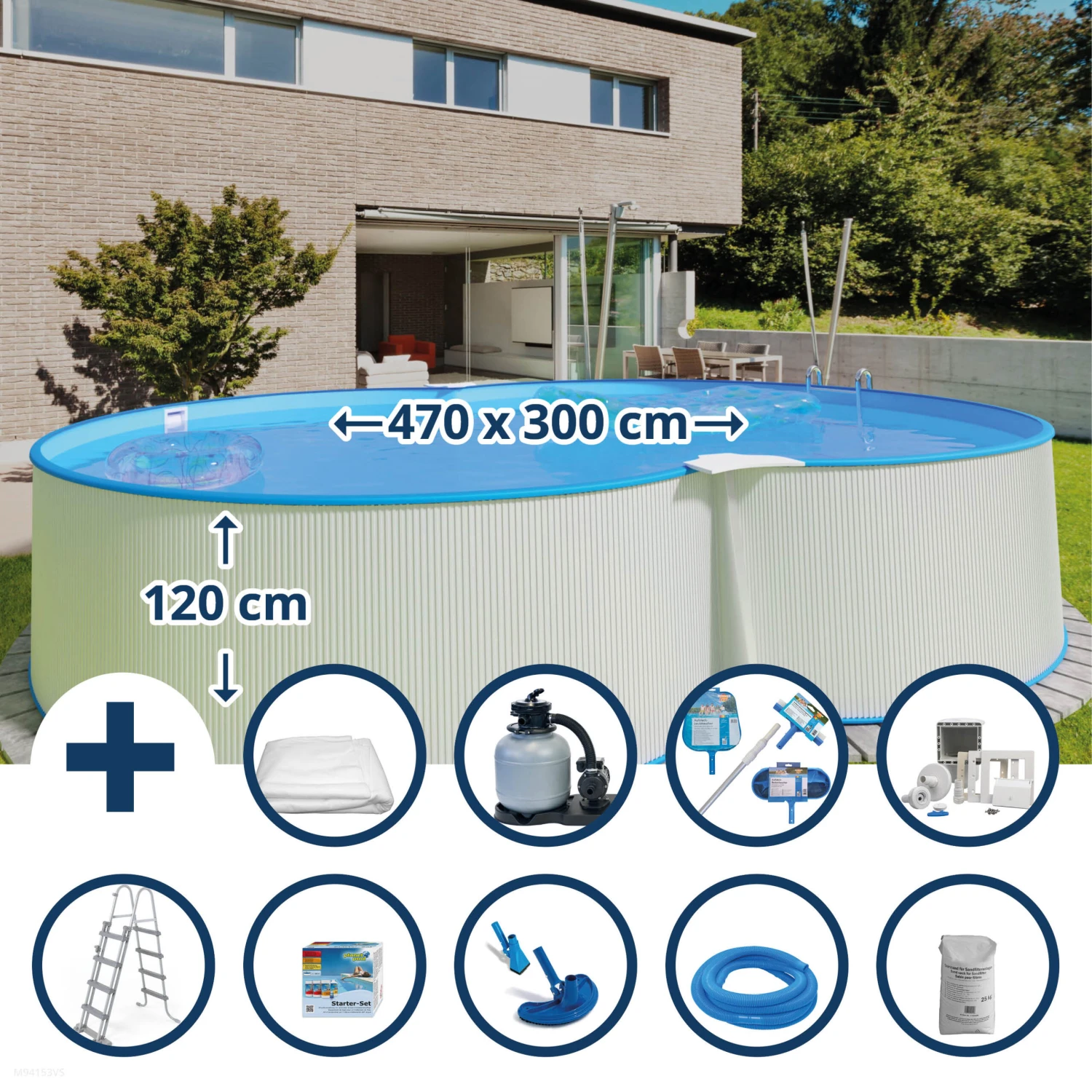 Waterman Stahlwandpool Set (12-teilig) Hoch Achtform 470 X 300 X 120 Cm, Stahl 0,4 Mm Weiß Folie 0,4 Mm Blau