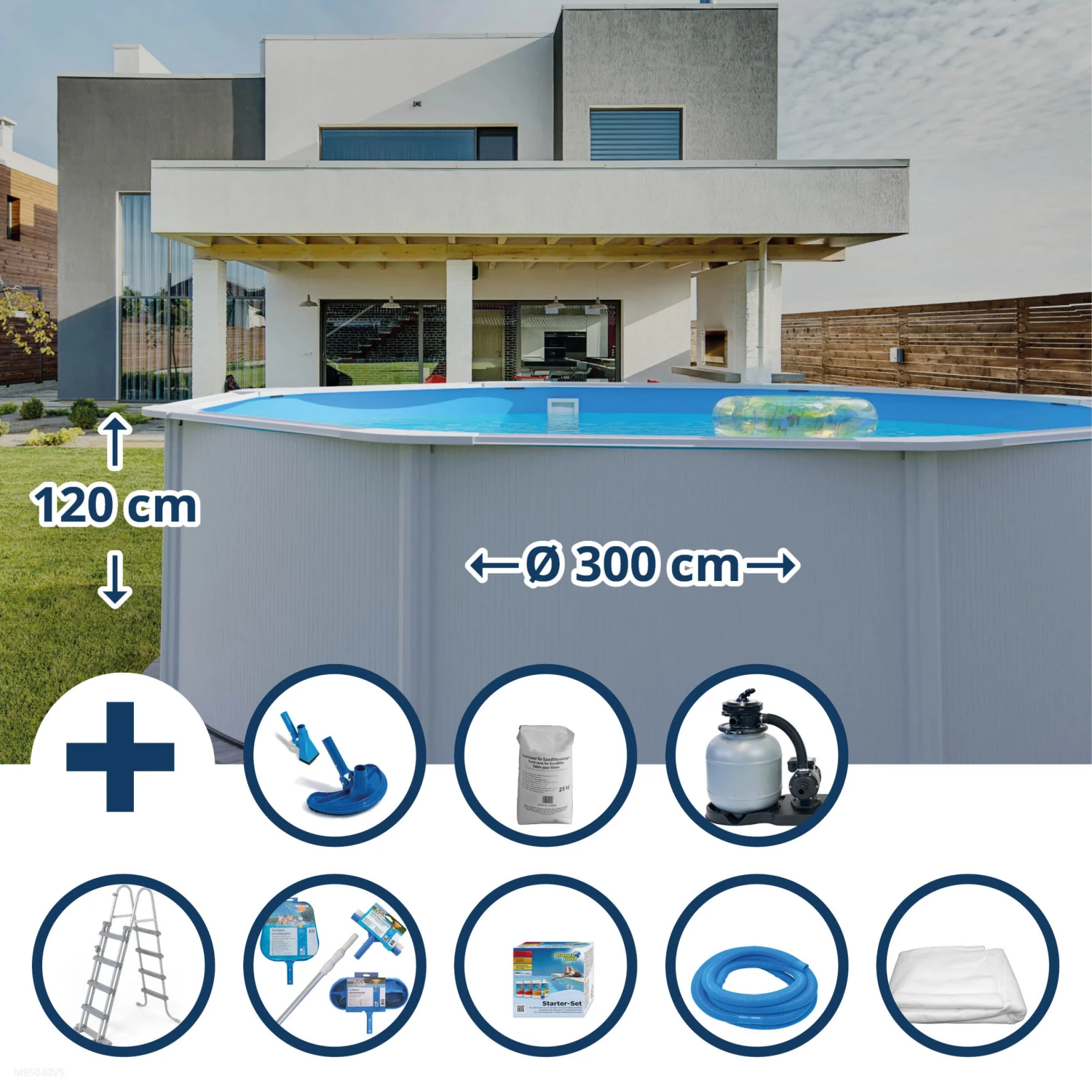 Waterman Stahlwandpool Set (9-teilig) Hoch Rund Eco 300 X 120 Cm, Stahl 0,4 Mm Weiß Folie 0,3 Mm Blau