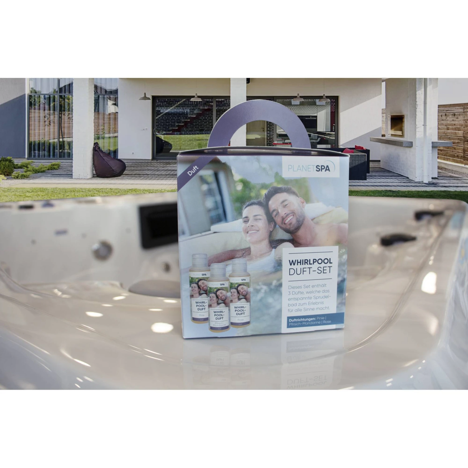 Drei DĂĽfte, welche das entspannende Sprudelbad zu einem noch intensiveren Erlebnis fĂĽr alle Sinne macht. Die wohltuenden Duftrichtungen Pinie, Pfirsich-Mandarine und Rose in Kombination mit dem angenehmen GefĂĽhl, in warmem Wasser zu baden sorgen fĂĽr eine tiefe Entspannung fĂĽr Geist und Körper.Â
